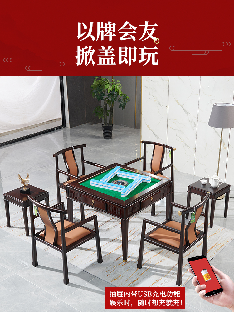 New Chinese mahjong table dining table dual-use one high-end mute Wujin wood mahjong machine automatic household mahjong table