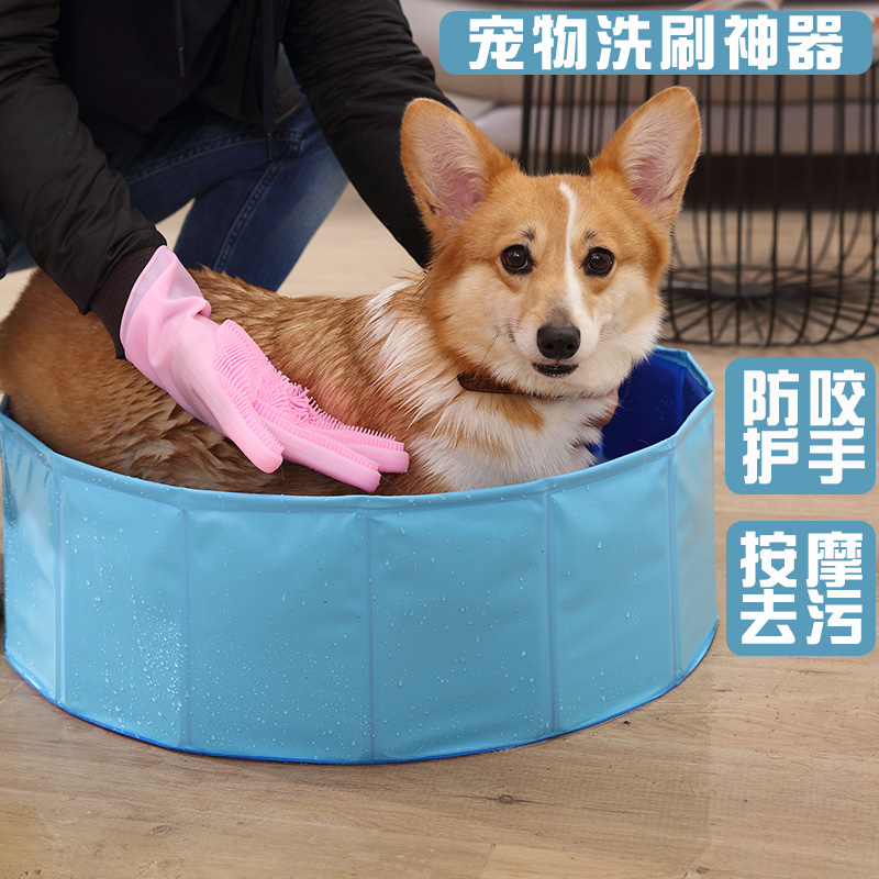 Pet dog teddy bath artifact cat anti-bite anti-scratch golden retriever bath with brush massage thick gloves