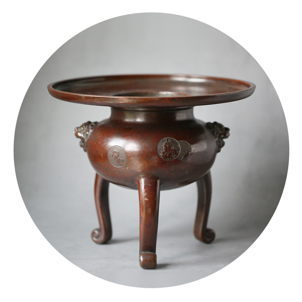Japanese era Things Old Spot Bronze Lion Ears Chisel Engraved Three Foot Thin End Retool in the inscription