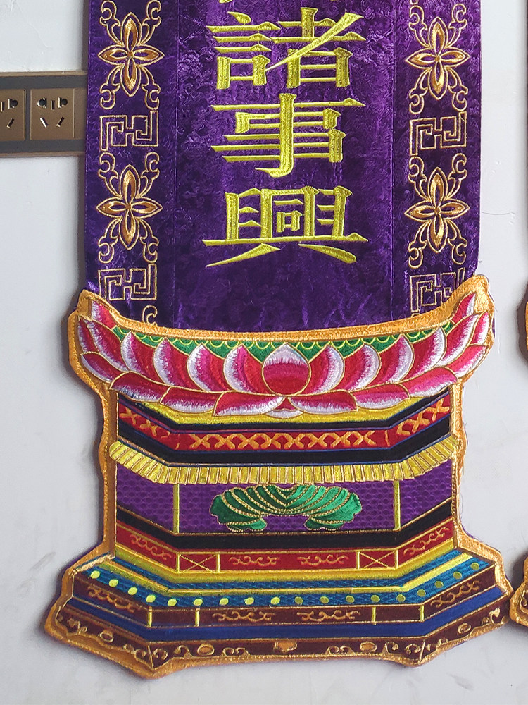 New purple hanging-hata pair of embroidery hanging-hata Taoist Buddhist hanging-hata with a hata base integrated into the head and the surface of the water