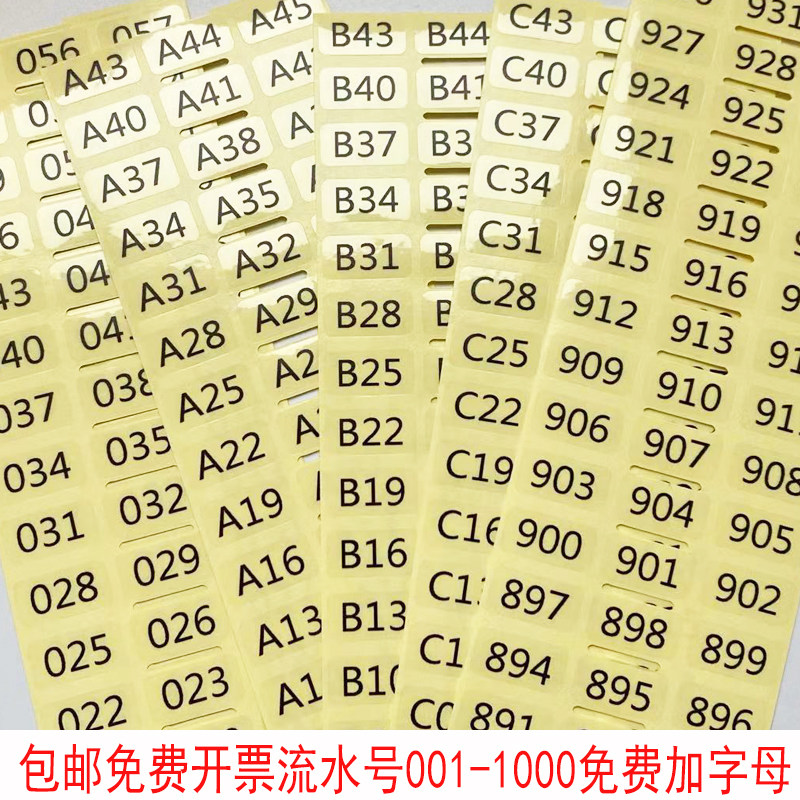 Transparent waterproof serial number 001-1000 self-adhesive digital label sticker hotel room card cup classification number