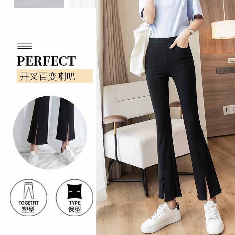 Open fork horn pants woman high waist display slim 80% small sub 70%-9 outside wearing bottom summer thin and slightly trumpeter pants