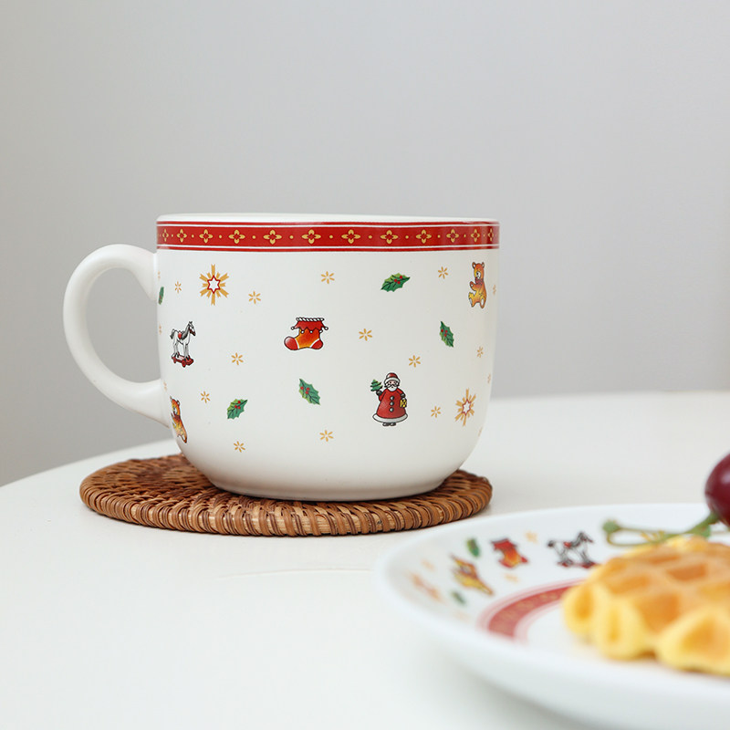 Export German Christmas series ceramic cartoon bowl cup breakfast oatmeal cup large capacity water cup breakfast cup