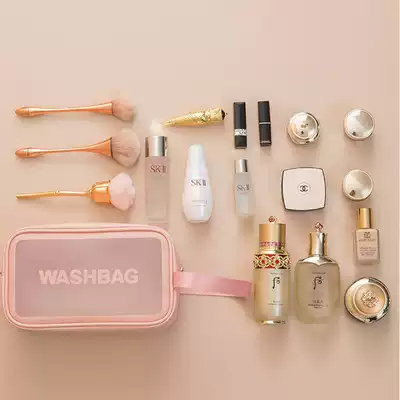 Korean portable large capacity portable travel transparent wash bag Pu waterproof frosted cosmetic bag skin care bag