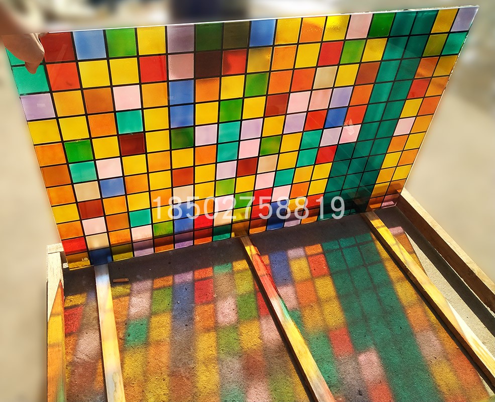 Custom-made carving craft glass ceiling lampshade seven-color block colorful and pleasant feeling transparent light