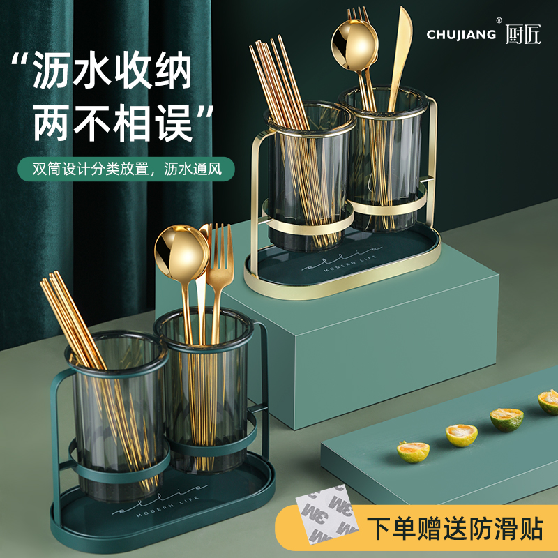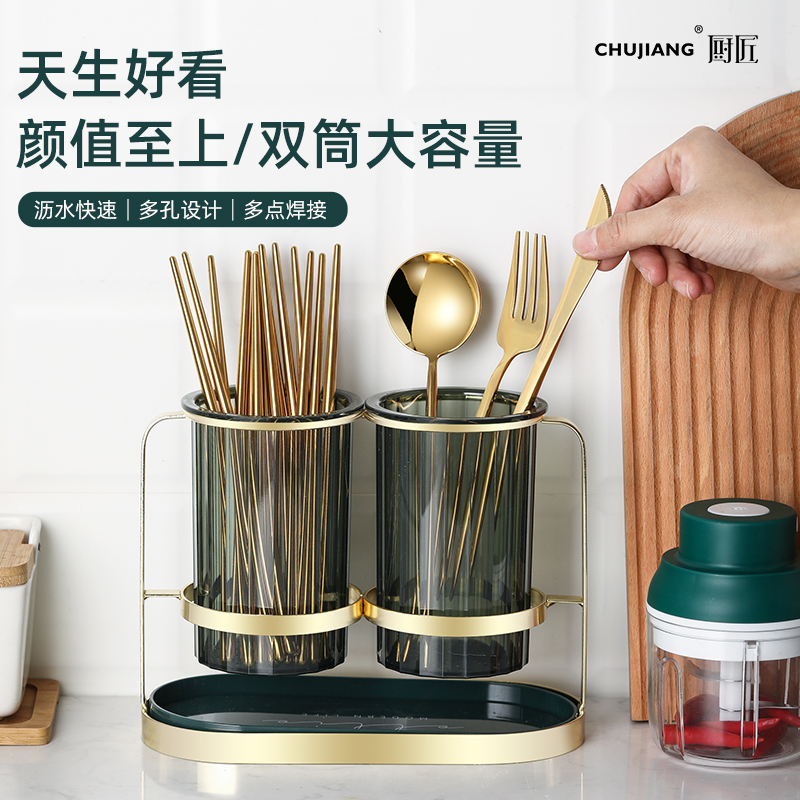 Light luxury chopsticks storage rack household chopsticks bucket drain tableware storage box chopsticks barrel kitchen chopsticks basket chopsticks cage