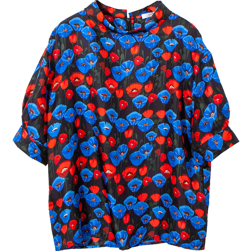 Beauty agency MZ retro flower print doll collar loose lantern sleeve twill silk shirt 22 spring and summer