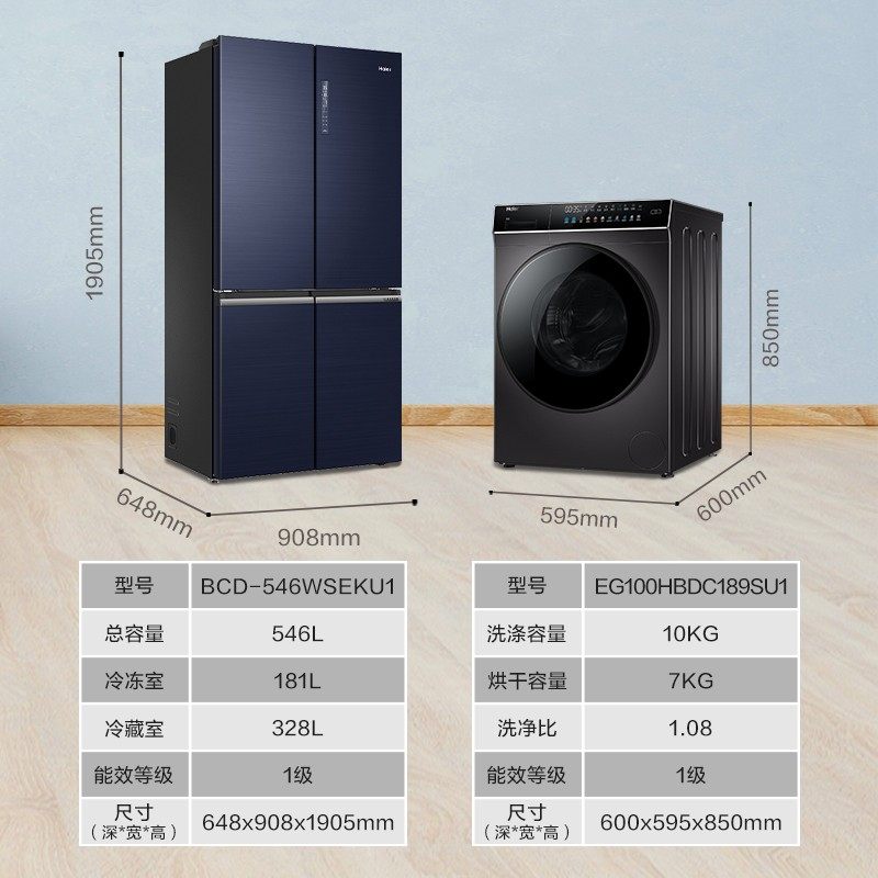 Haier refrigerator washing machine set combination 546L cross-opening four-door full space fresh-keeping direct drive washing and drying drum