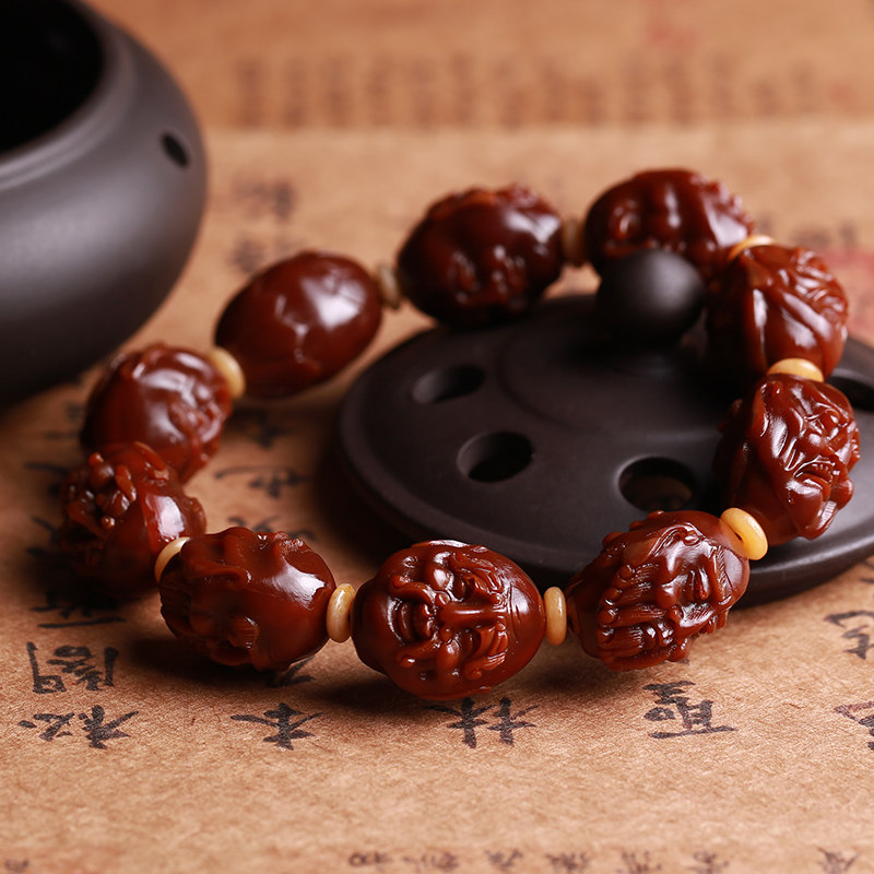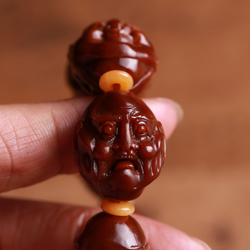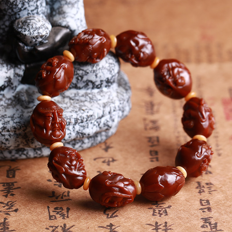 Olive core double-sided eighteen arhats hand string olive Hu core carving Buddha beads hand chisel men and women play and play with handmade characters