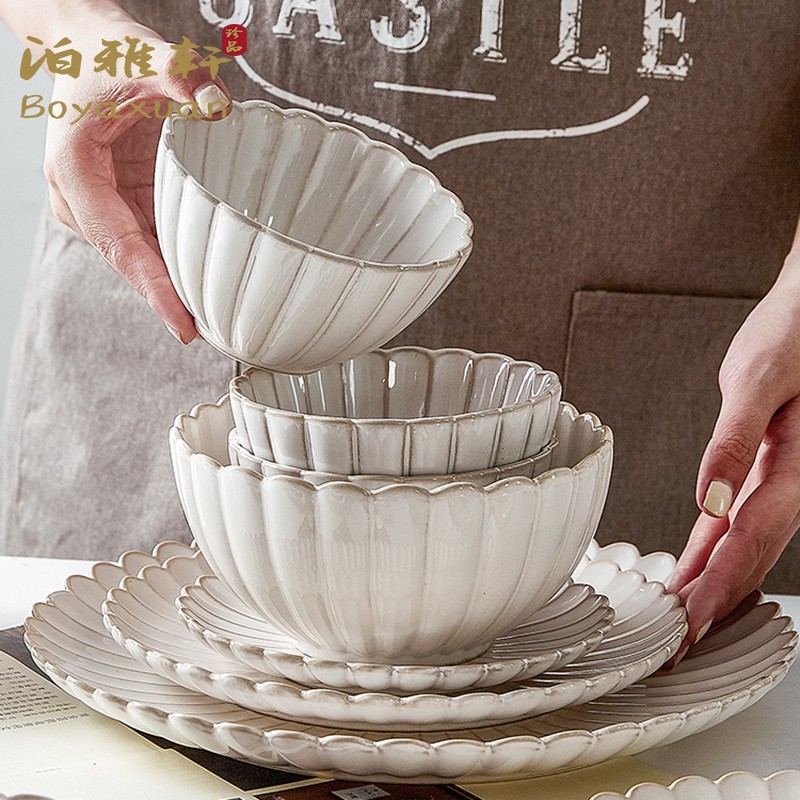 Bo Yaxuan bowl set home Nordic tableware bowl plate pure white plate light luxury creative ceramic bowl combination