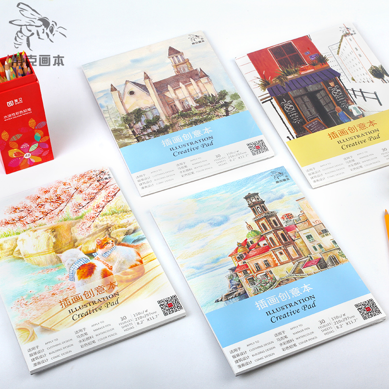 Mike Pen Creativity Ben Auven Fabric Hand Plotter Ben A5 Blank Sketch Book A4 Watercolor Fresh Drawing Color Pencil Ben Fine Art Painting Ben Thickened Watercolor Sketchbook Sketchbook Sketchbook Sketches Sketches for a Portable Speed Write