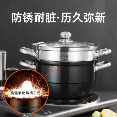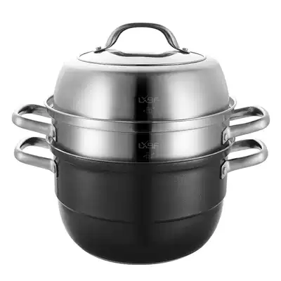 (Yellow and black) steamer household 304 stainless steel steamer thick 28cm2 double three multi-layer gas stove