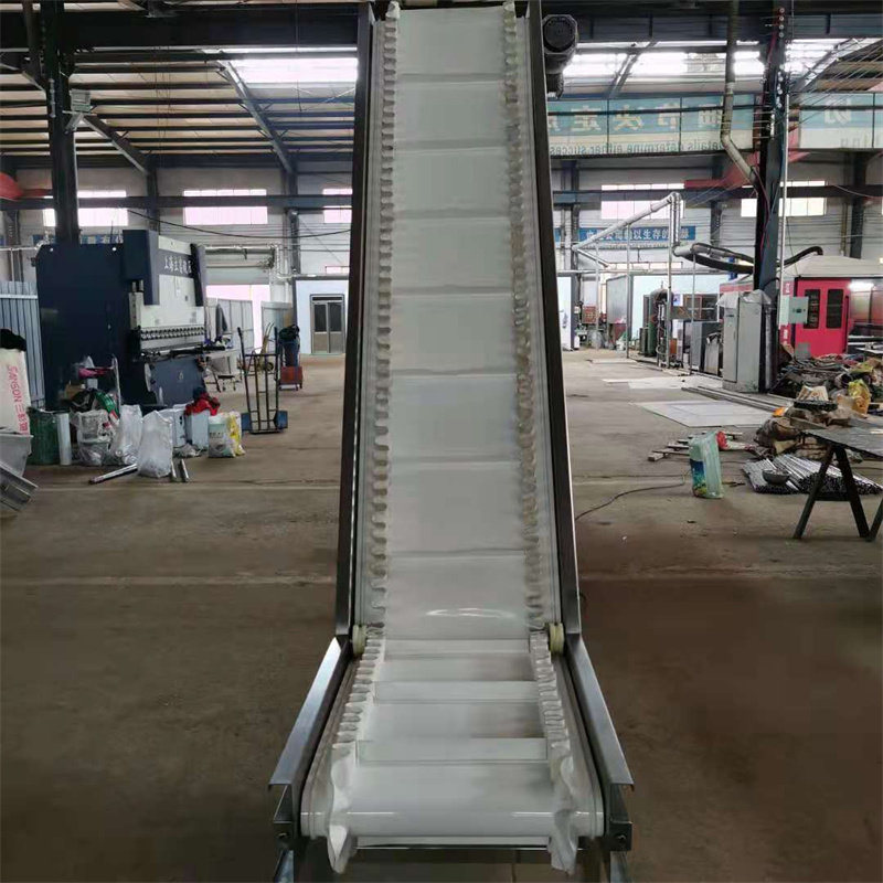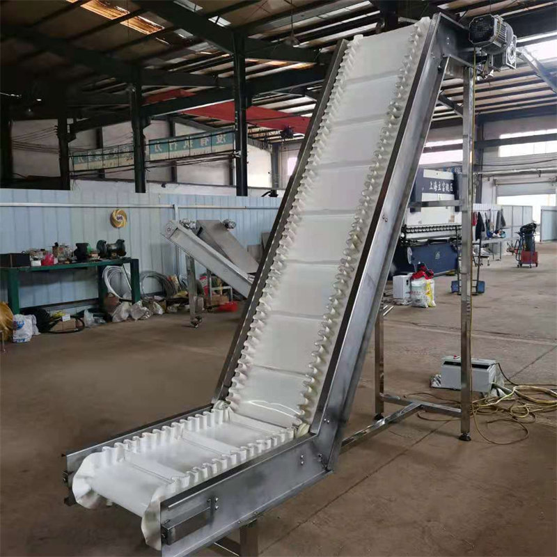 Food grade white belt skirt swing climbing elevator transport bread crumb stainless steel belt conveyor equipment