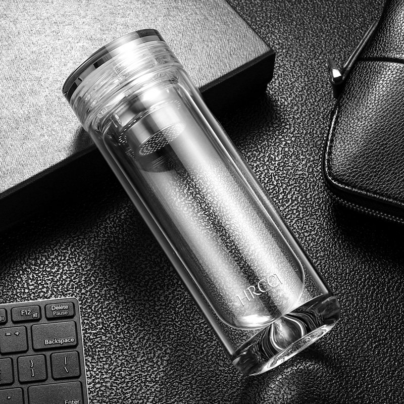 HRCCI light luxury double-layer insulated glass cup men's water cup filter tea cup creative personality trend customization