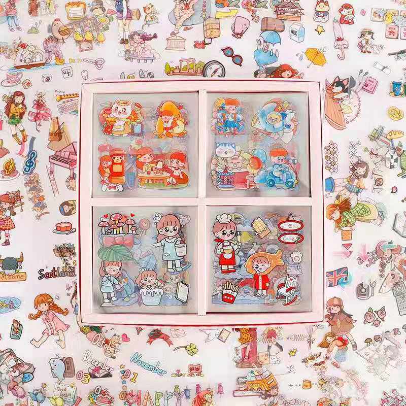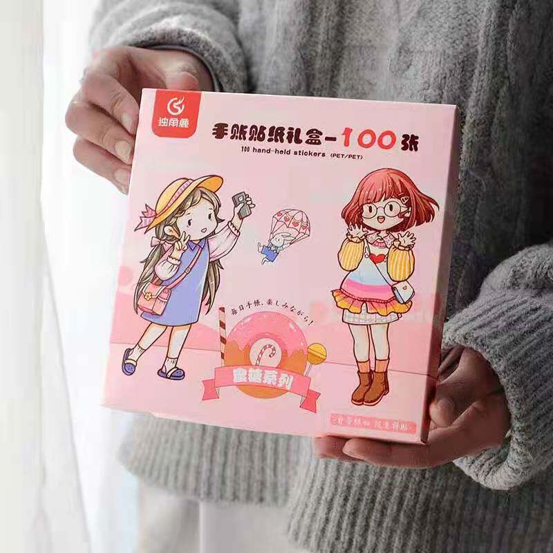 Hand account stickers pet girl heart cute decorative small pattern hand account material package set 100 water cup stickers waterproof