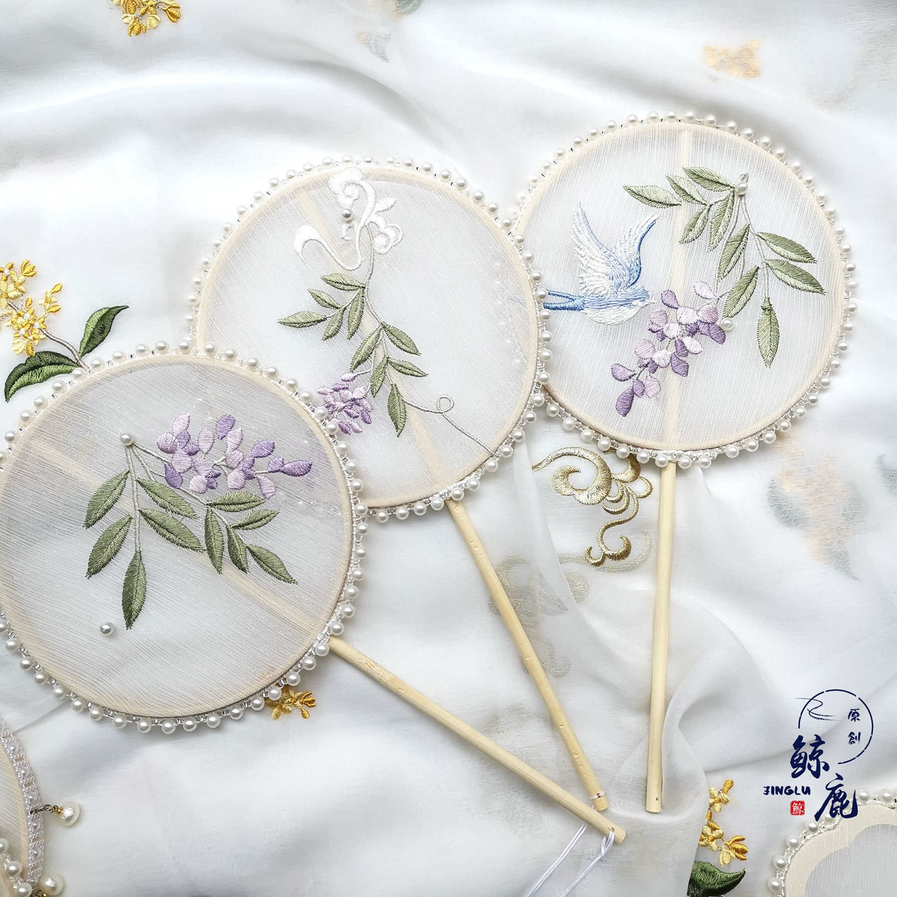 Whale deer wisteria flower embroidery palm fan Children's photo props Mini catwalk round group fan Phoenix crown shaped fan