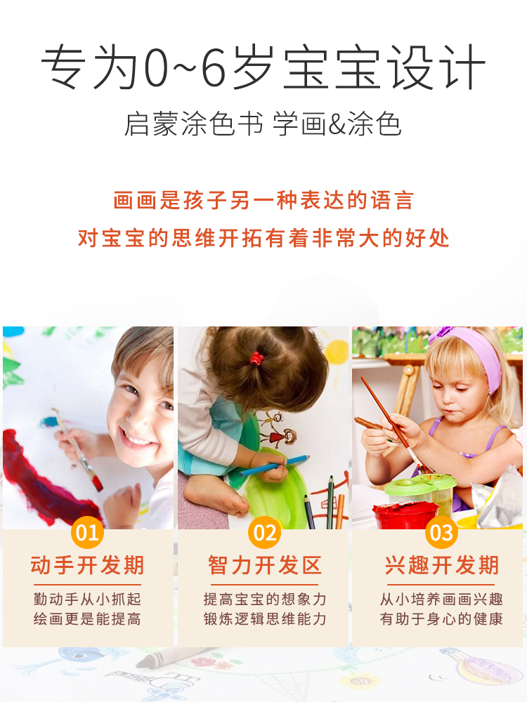 Children's coloring book 0-6 years old picture book kindergarten baby enlightenment painting graffiti coloring book full set of crayon color lead coloring picture book simple strokes painting painting book puzzle painting book elementary school