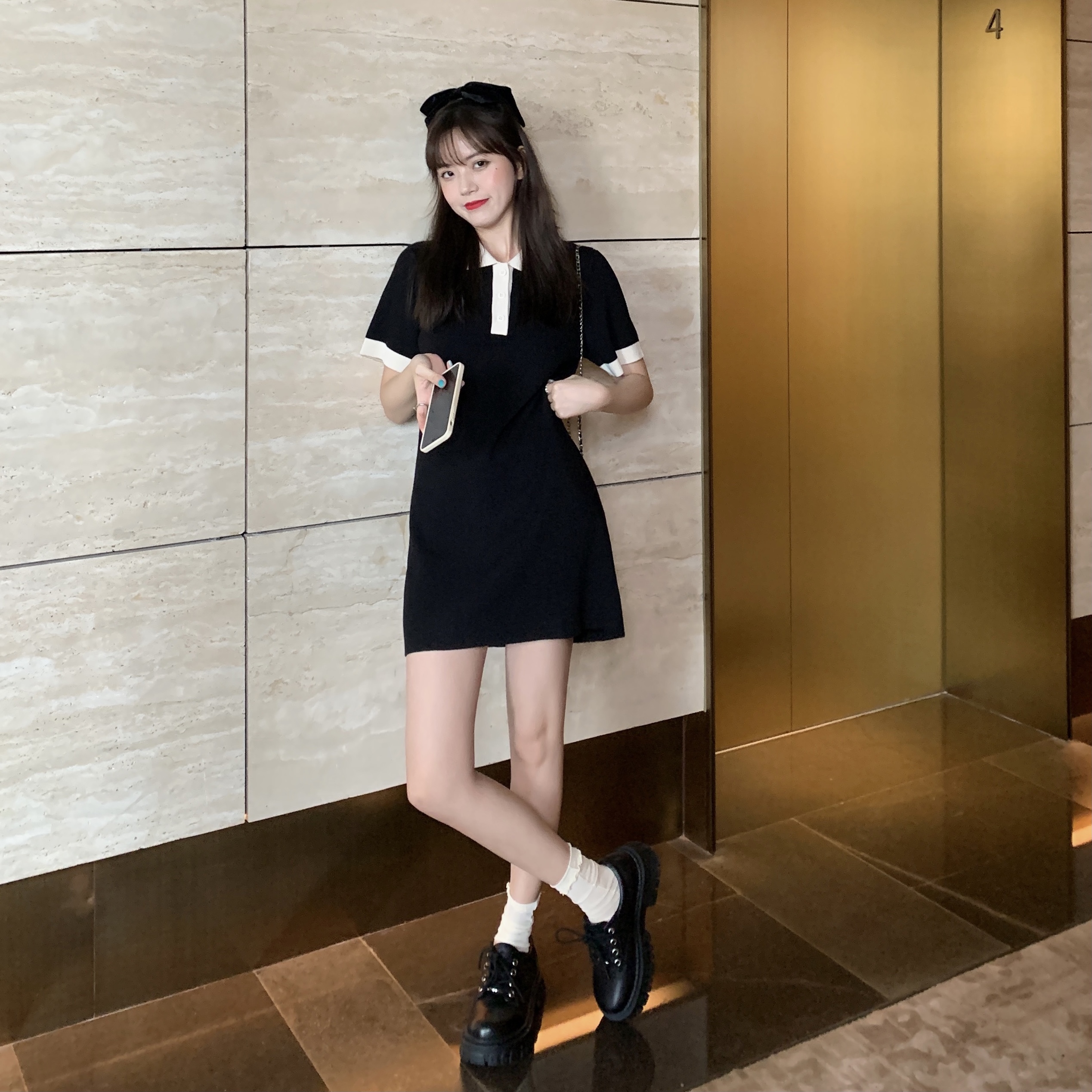 Yellow T-shirt dress women's summer dress 2022 new French small high-end sense Tibetan meat knitted polo skirt