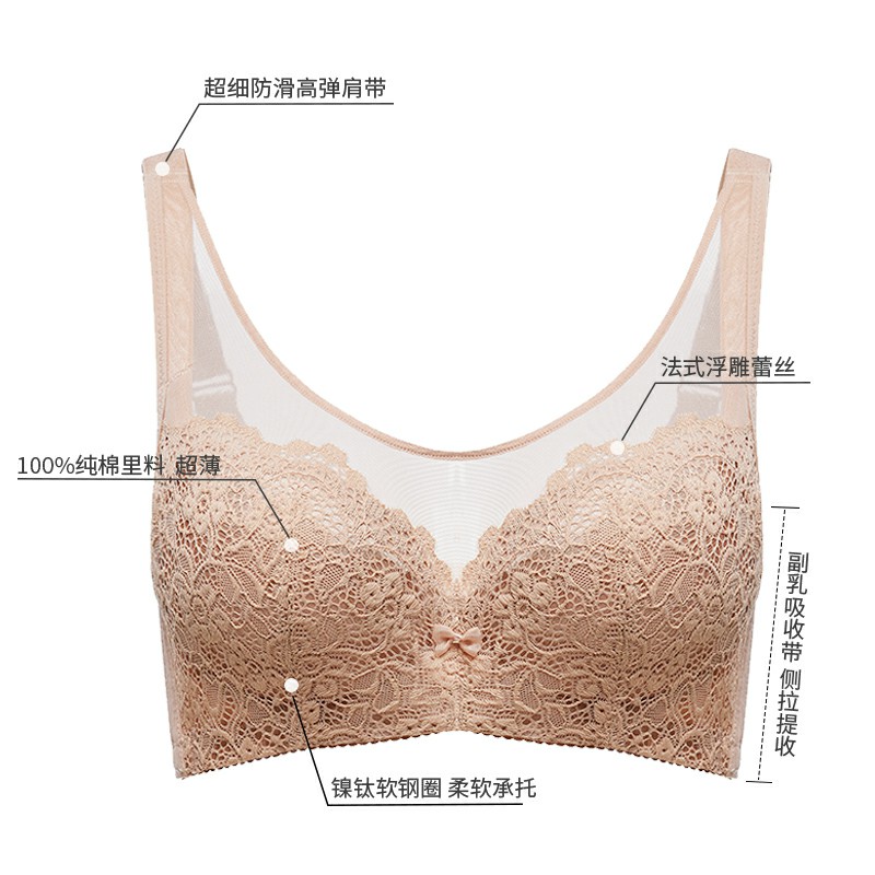 Dahil Smear Underwear Female Big Chest small collection of Deputy Dairy Anti-drooping thin Shockproof Bra Anti-Walking Light Full Cups
