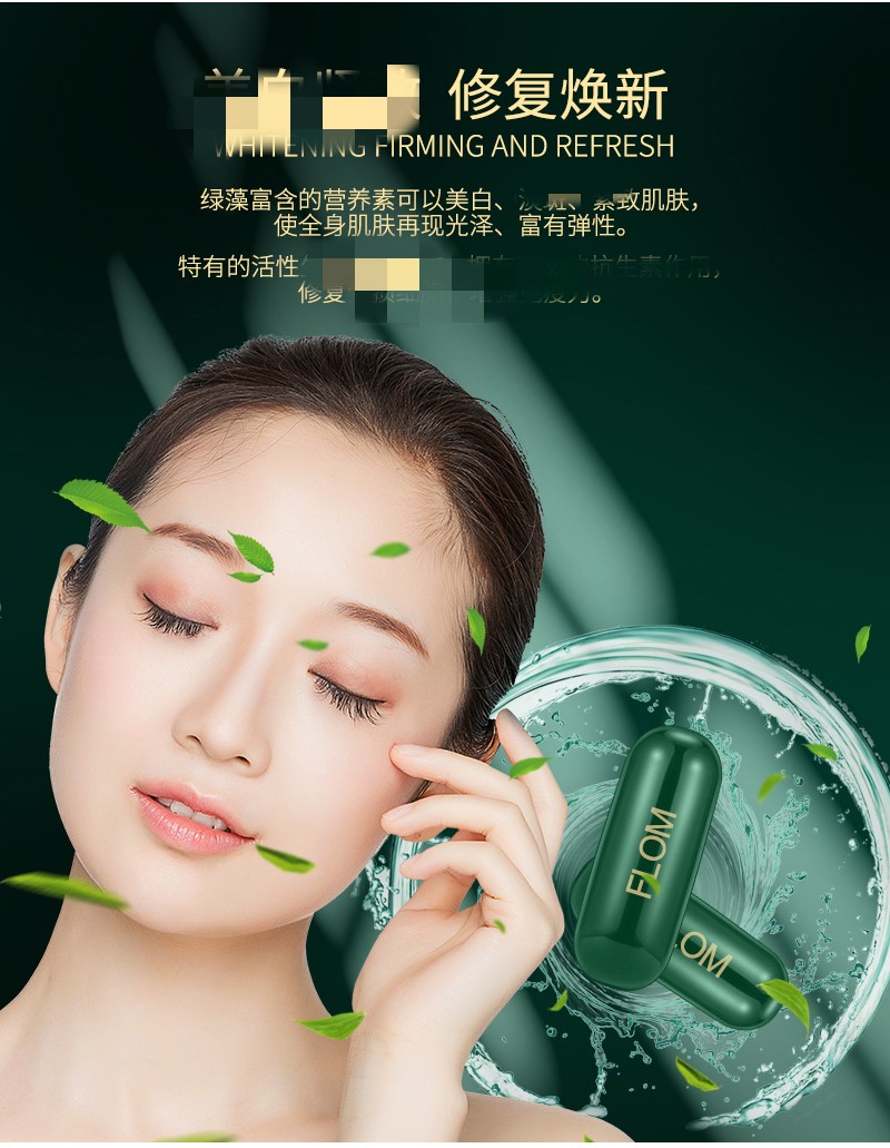 New Zealand's FLOM FLOM green algae and seaweed capsules brighten and rejuvenate the skin, regulate the stomach, lighten the lines and spots 30 capsules