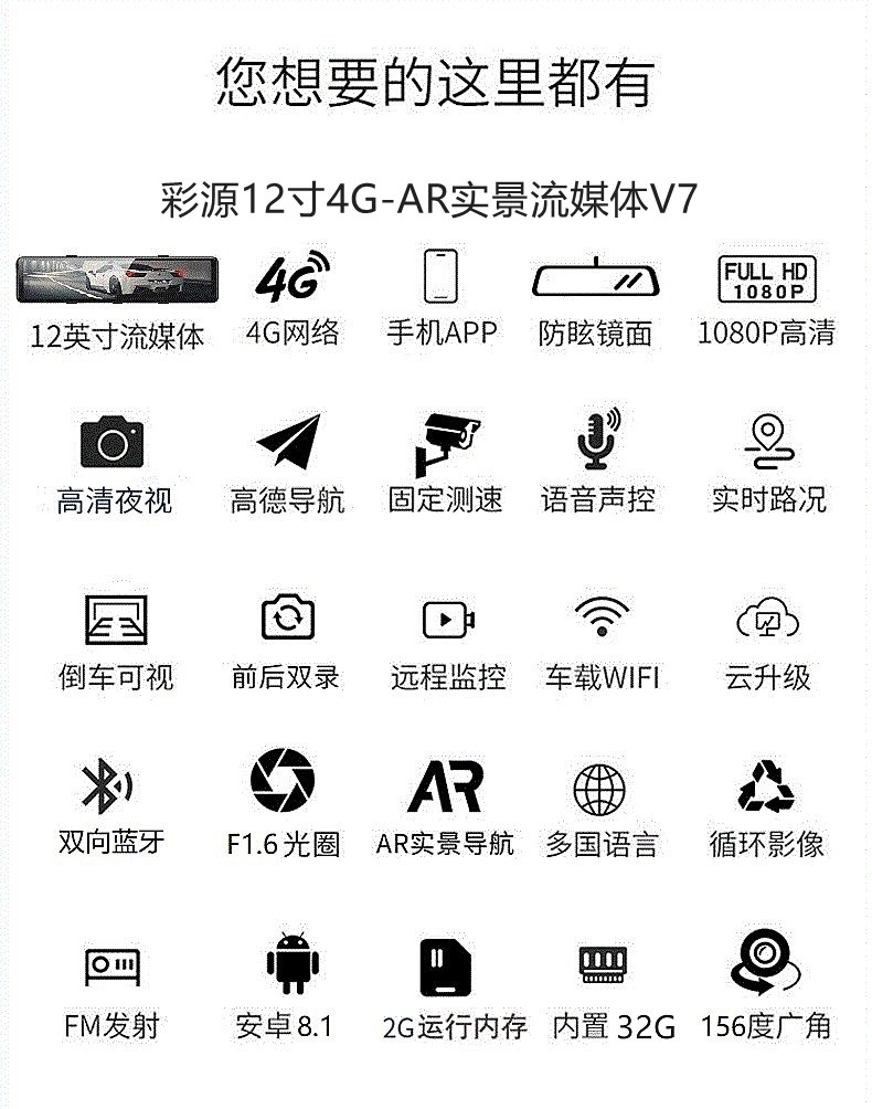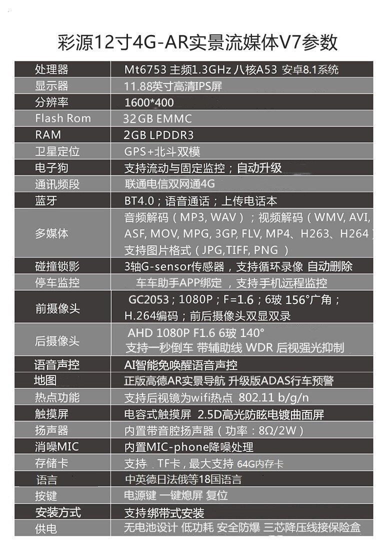 12 12-inch 4G Smart AR Real View streaming media V7