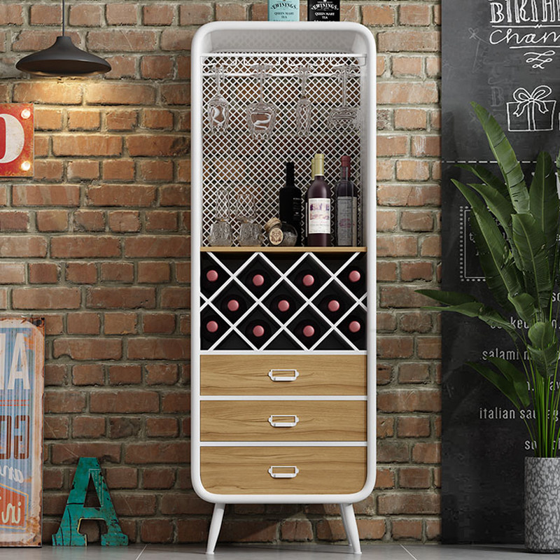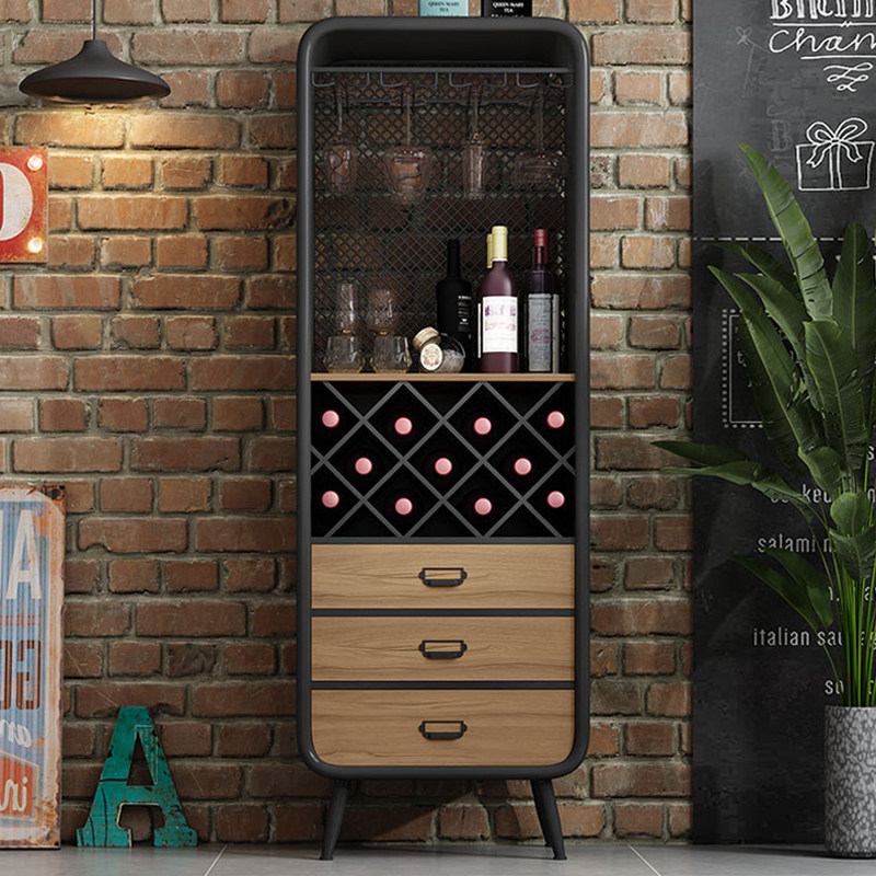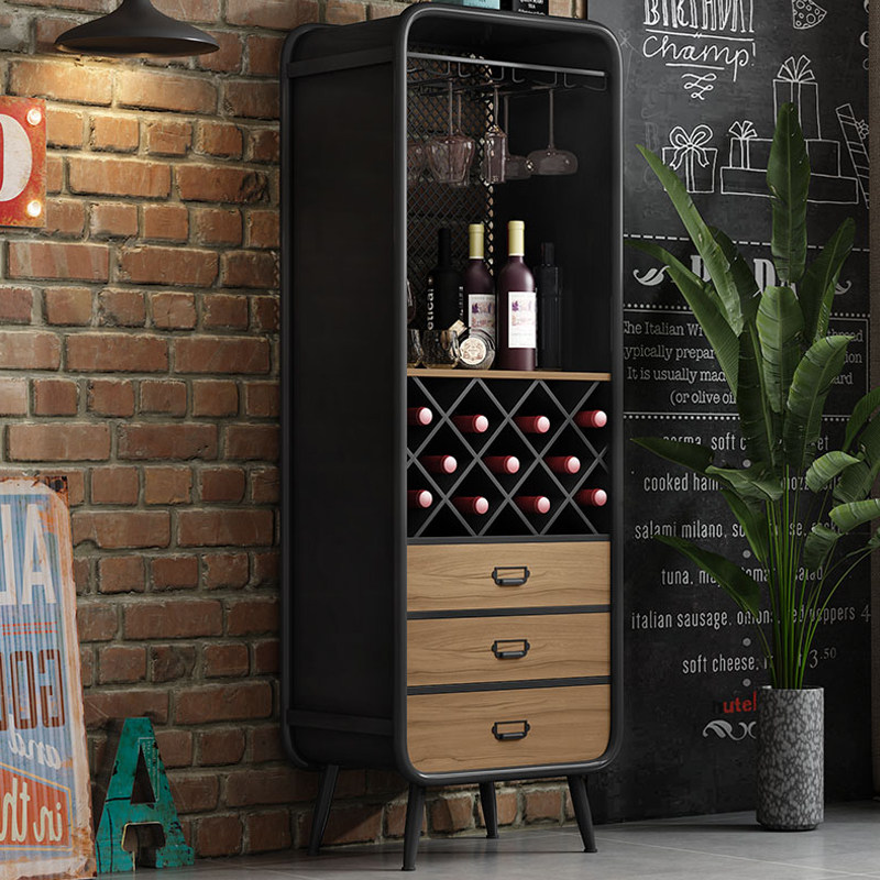 Nordic wine cabinet storage cabinet integrated by wall iron art dining cabinet solid wood light and luxurious shelves multifunctional customisation