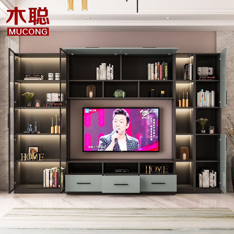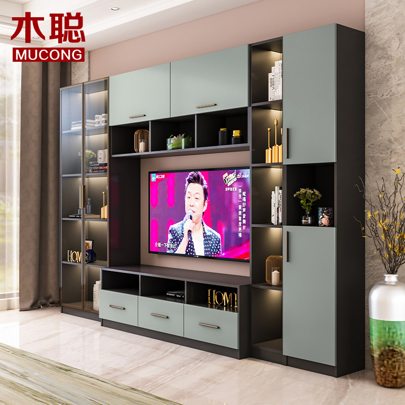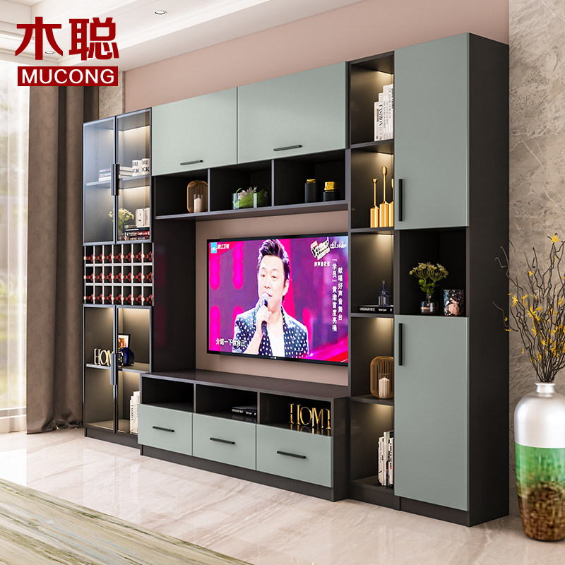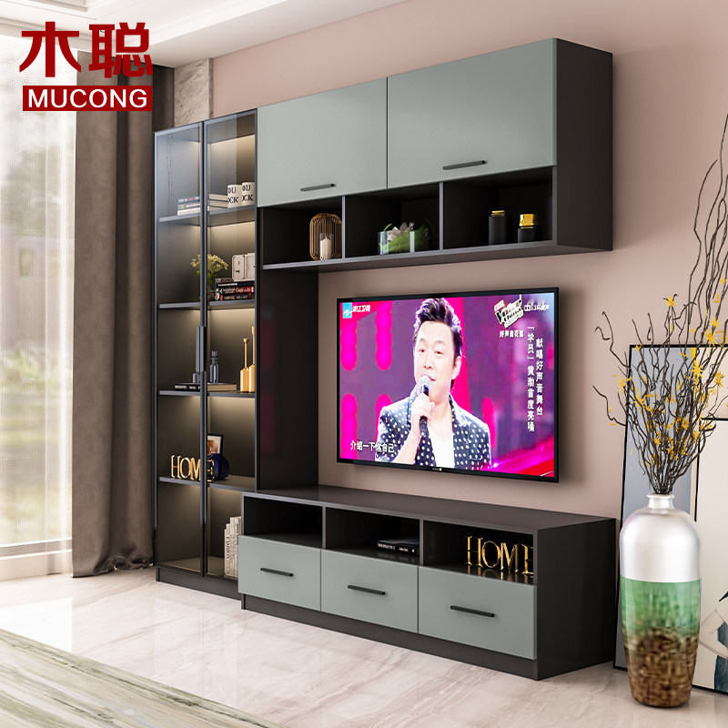 Living room modern light and luxurious TV cabinet integrated wall cabinet floor with lamp small family type wall-mounted multifunctional hanging cabinet
