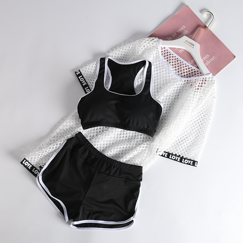 Fashionable white three-piece suit (fashionable sun protection) Temperament black three-piece suit (slim and sporty) White sticker three-piece suit (fashionable sunscreen) Sweet pink sticker three-piece suit (foreign style princess) Cool