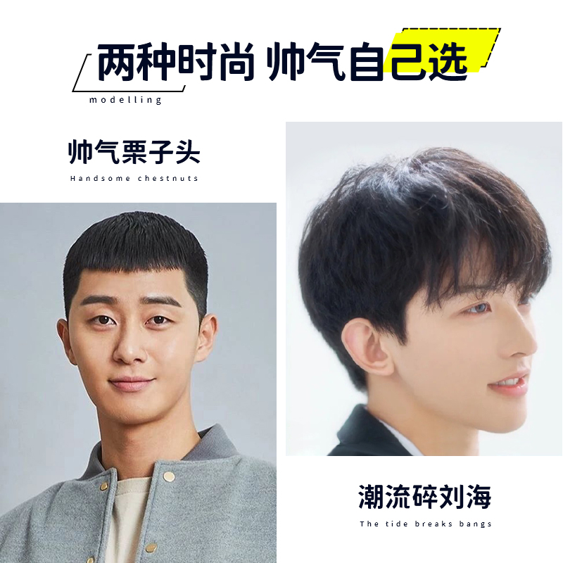 Wig male short hair handsome Korean version of short hair wig piece full real hair head invisible markless men's head head patch