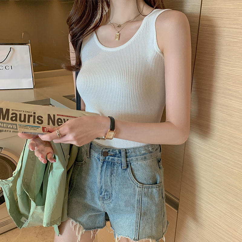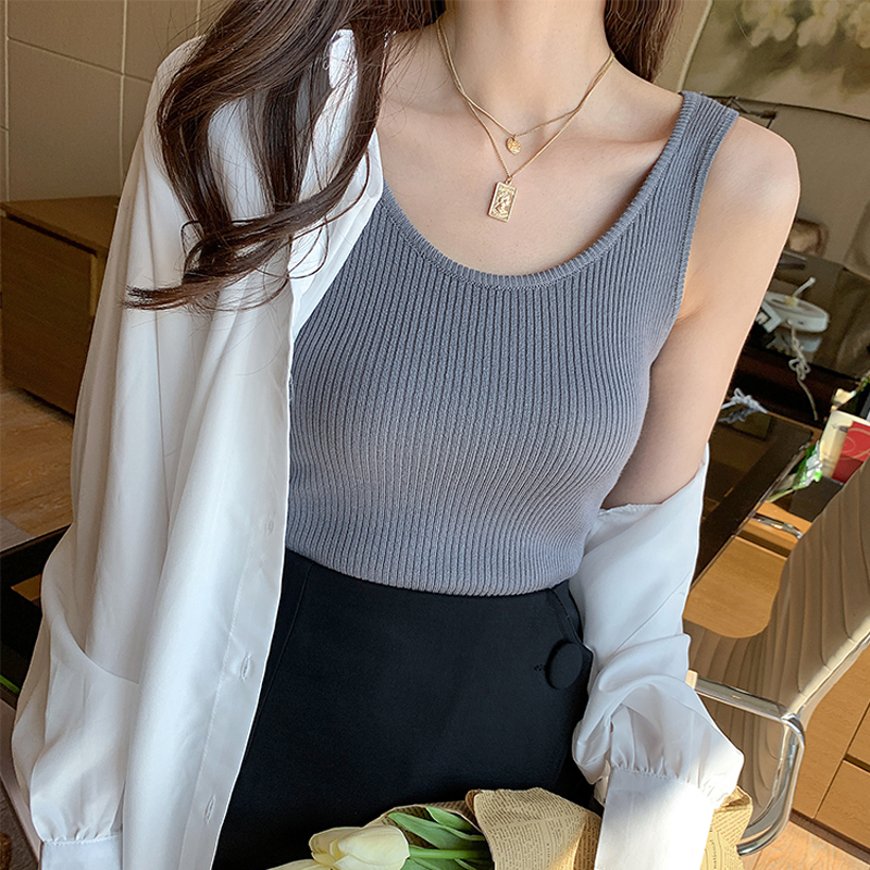 2022 Summer New Knit Small Harnesses Vest Woman Design Sensation Outside Wearing U Collar Short of inner lap Tide