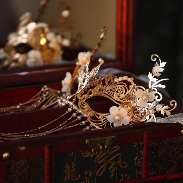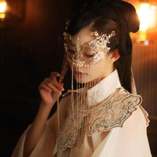 cosplay mask (adjustable in size) golden face curtain silver face curtain golden face curtain hook hair without ear hanging silver color face curtain hook hair without ear-hanging ancient wind forehead