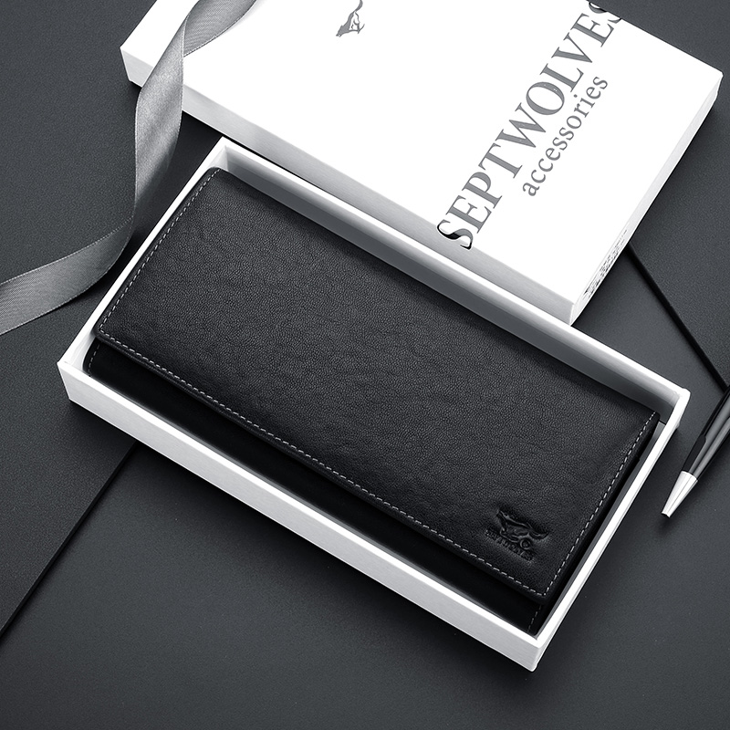 Seven Wolves Men's Wallet Tide Cards Long Version Men's Real Leather Money Clip Luxury Brands Head Layer Soft Cow Leather Wallet Daddy