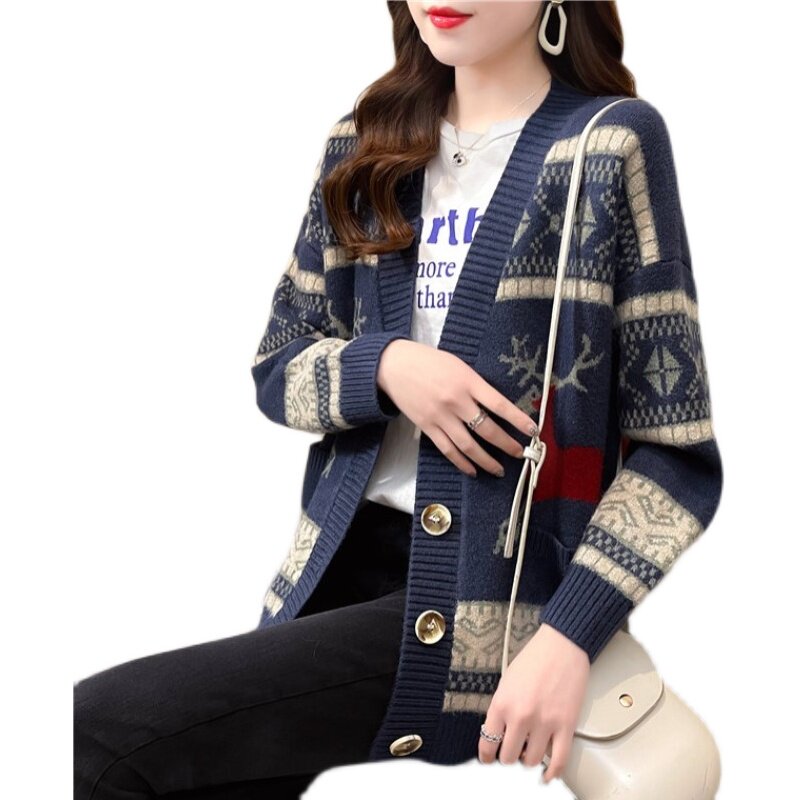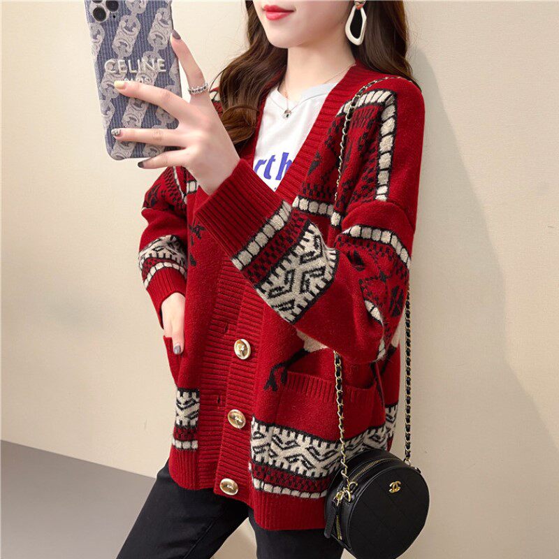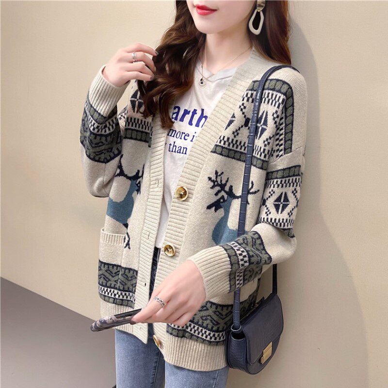 Retro National Wind Small Deer Sweater Jacket Woman Spring Money 2021 New Loose Outside Wearing LAZY WIND KNIT CARDIOVERT