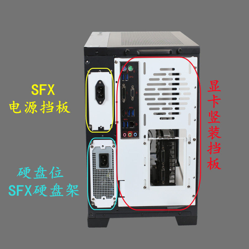 Graphics card vertical mounting bracket hard disk bit SFX power rack ATX power supply compartment SFX power supply bit baffle