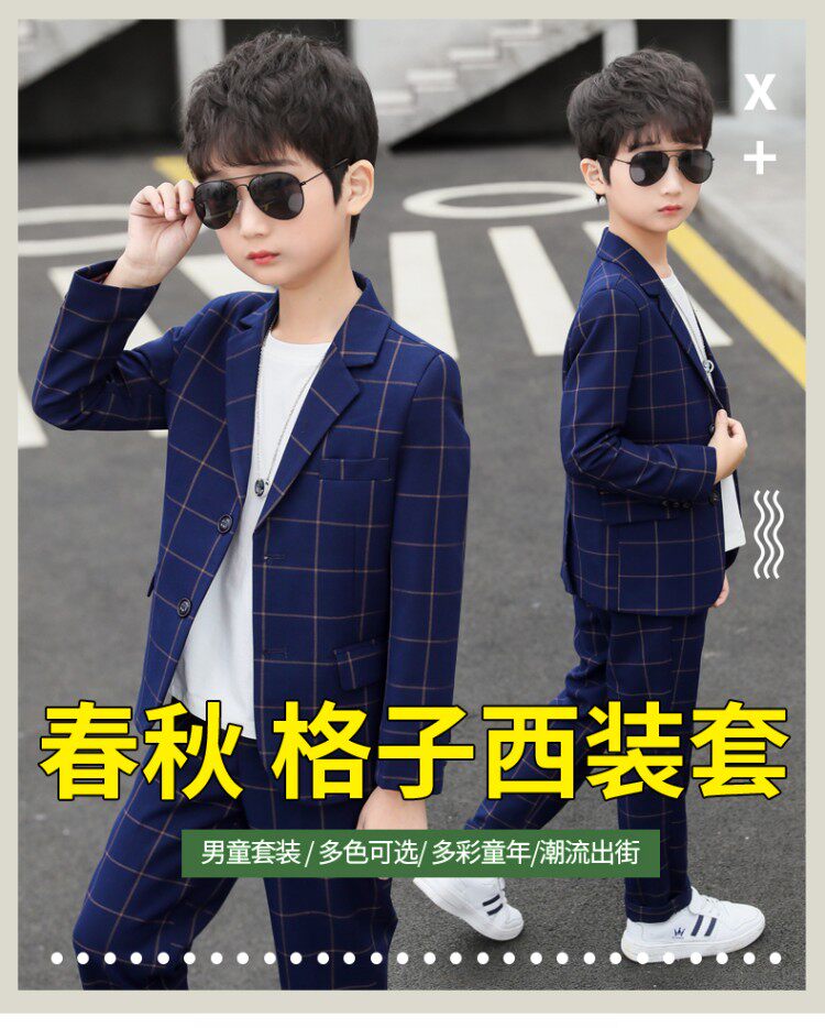 Boy suit suit Spring and autumn loaded with Korean version jacket Children's foreign pie Little Western suit Inron boy handsome gown for leisure