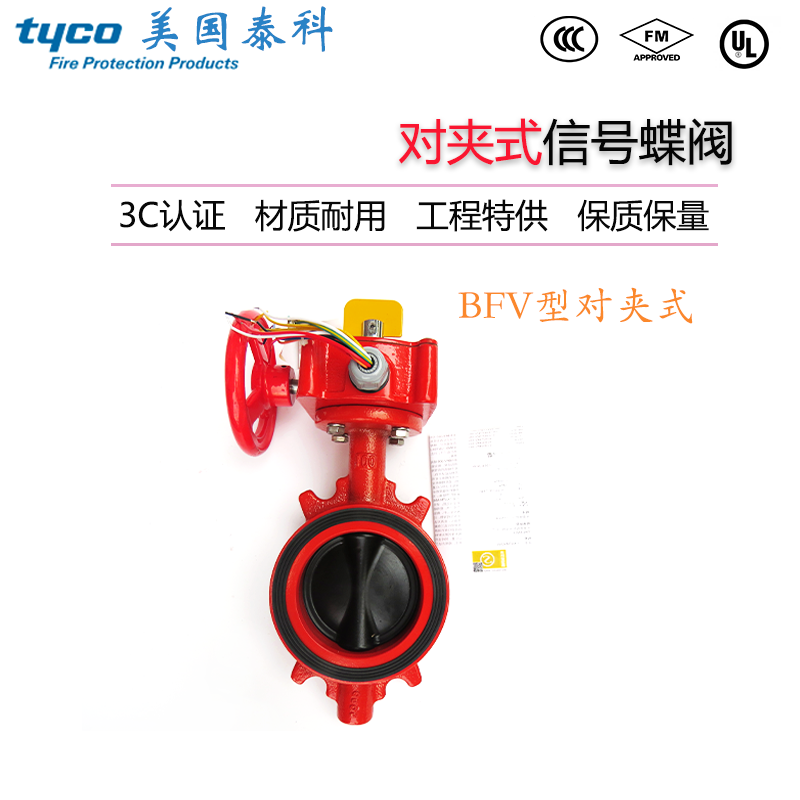 U.S. Tyco BFV Wafer Type Fire Signal Butterfly Valve FM Certification 3C Certification Golden Shield Signal Butterfly Valve