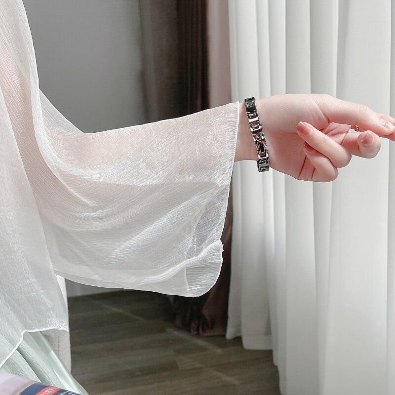 Silk sunscreen cardigan small shawl women's summer thin super fairy luster sunscreen clothes outside with tulle top 2021 new