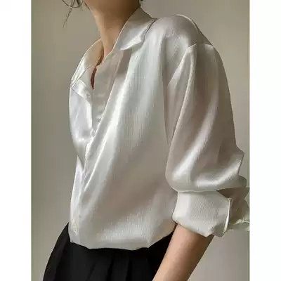 White long sleeve satin shirt female design sense niche light mature Hong Kong style 2021 autumn new professional texture shirt