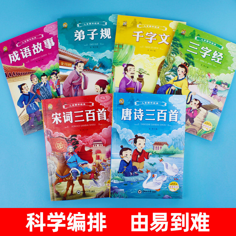 6 volumes full version of Tang poems 300 early childhood education genuine complete works of Song poetry ancient poems 300 first three-character scriptures disciple regulations thousand-character idiom story book early education children's Chinese enlightenment classic picture book extracurricular reading books for primary school students