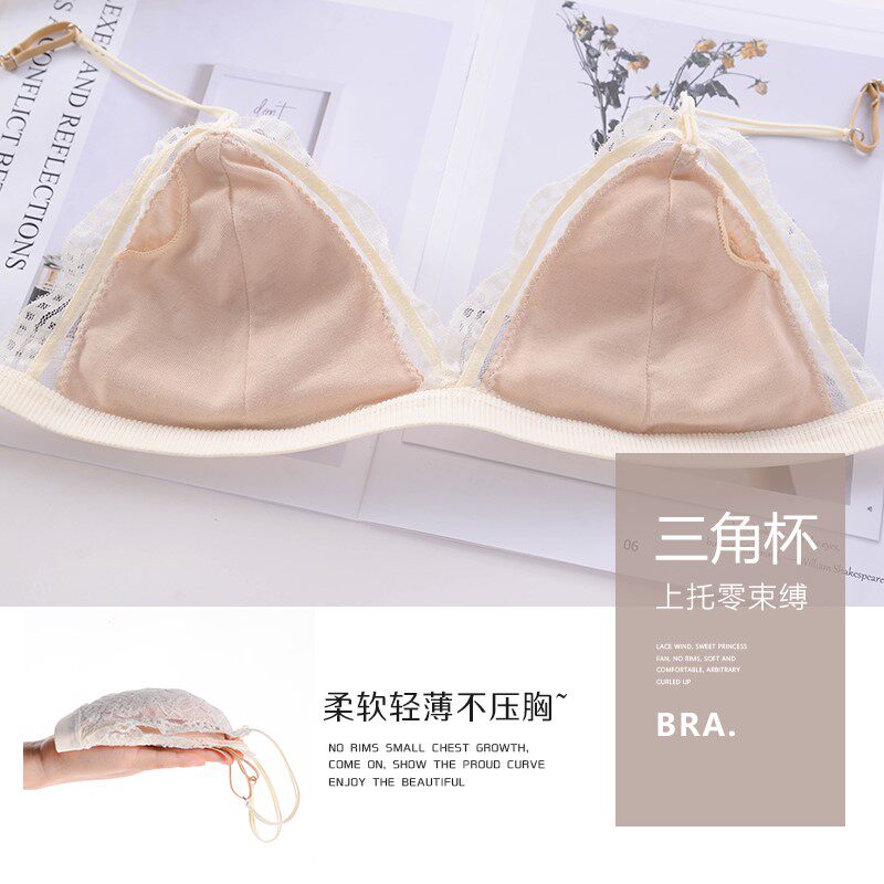 Legal lingerie woman no steel ring ultra-thin summer triangle cup fine shoulder strap sexy and breathable big chest display small text bra