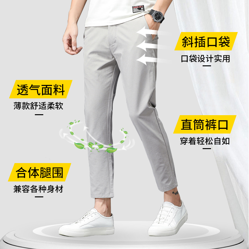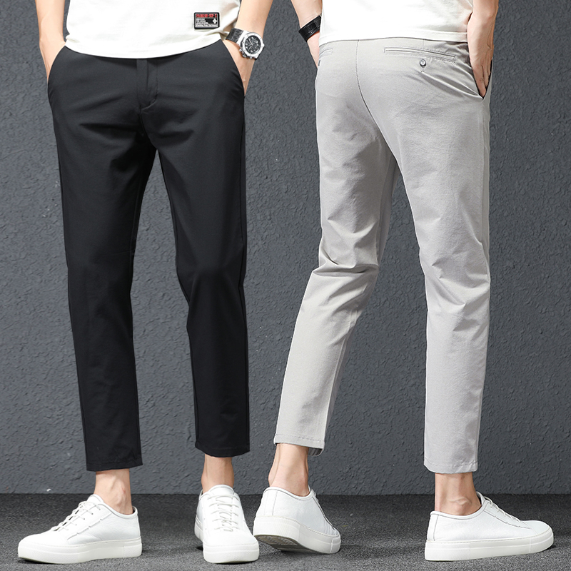 Trousers Men's Summer Thin Ice Silk Men's Pants Slim Straight Elastic Casual All-Match Pants Men's Nine-point Men's Pants