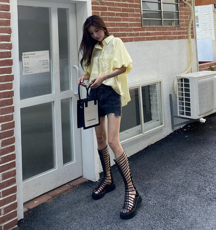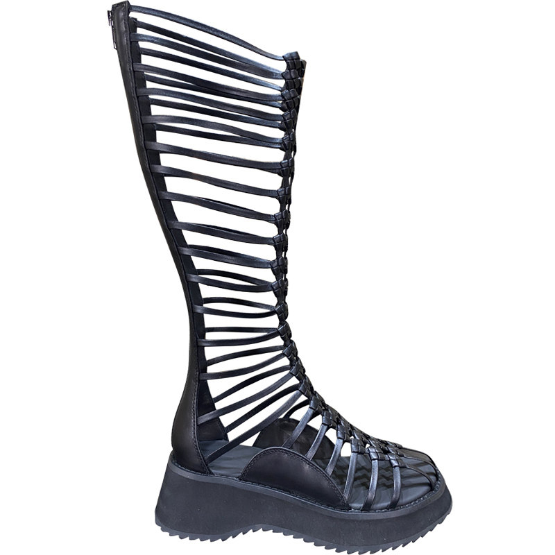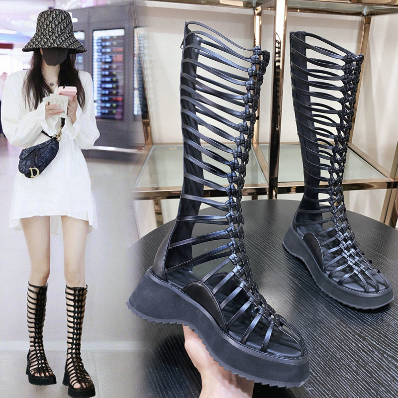 mona Tongi Cool Boots Tide Summer Women 2022 New Sandals Pine Pastry Thick Bottom Woven High Cylinder Hollowed-out Mesh Boots Long Drum