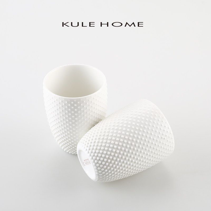 A pair of white relief dot mouth wash cup 350ml white relief dot