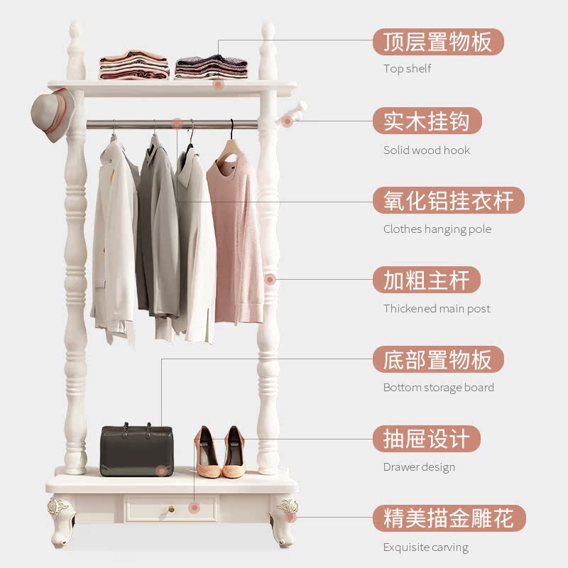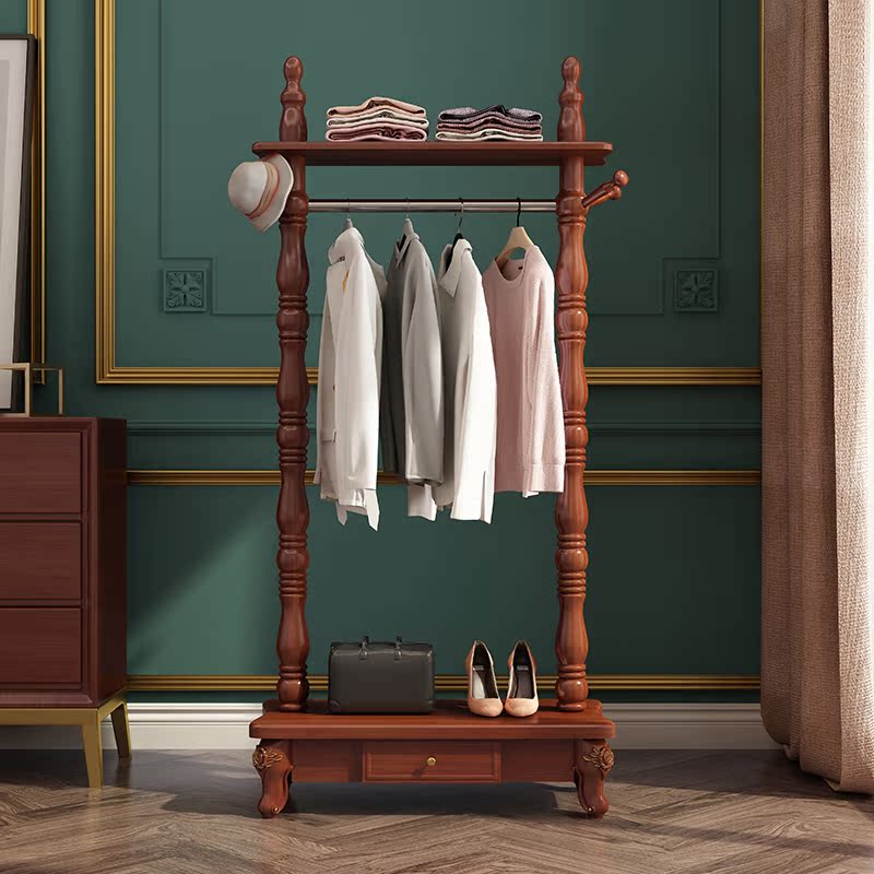 European style hanger floor bedroom solid wood coat rack living room home American luxury simple clothes rack