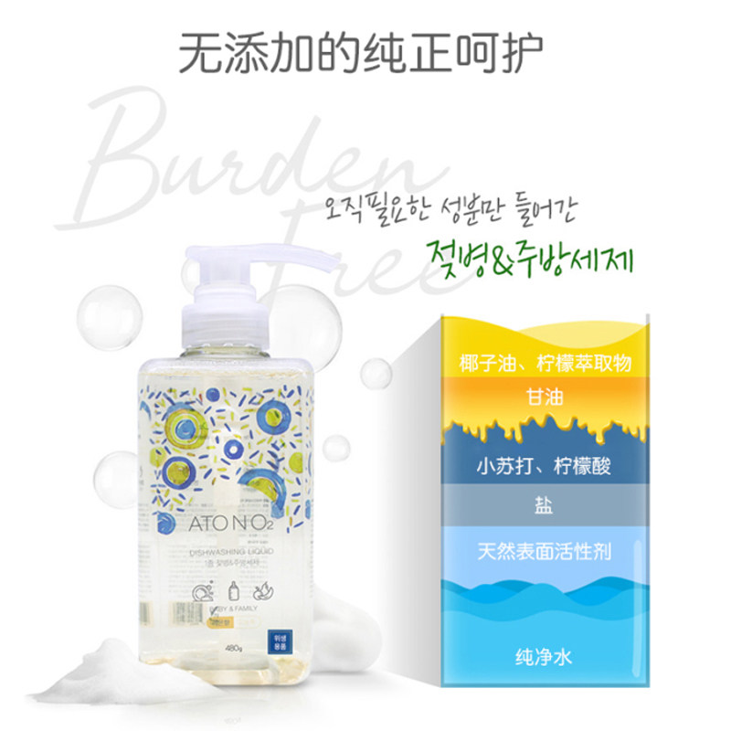 South Korea ATONO2 Love multi-oxygen milk bottle fruit and vegetable detergent baby fruit baby cutlery cleaning liquid lemon balsamic