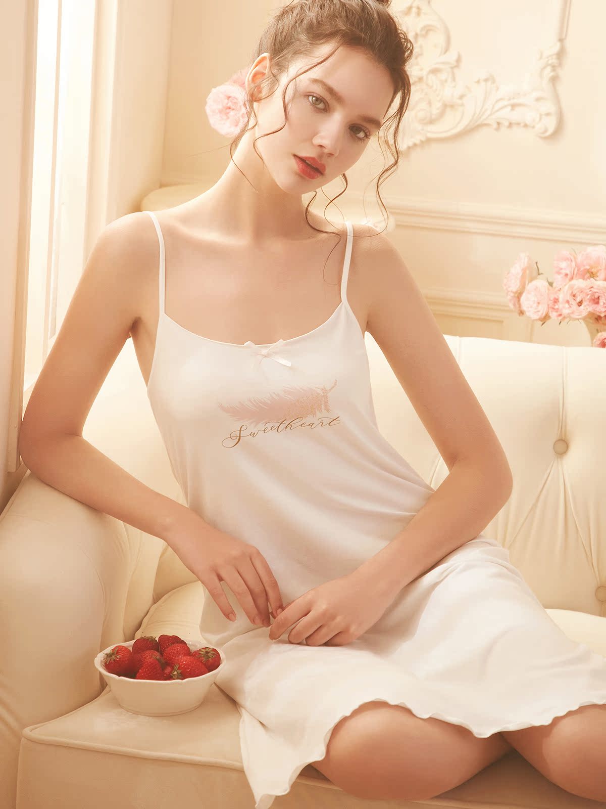 Lotus suspender nightdress female summer thin cotton cute Japanese sweet girl little sexy princess style pajamas