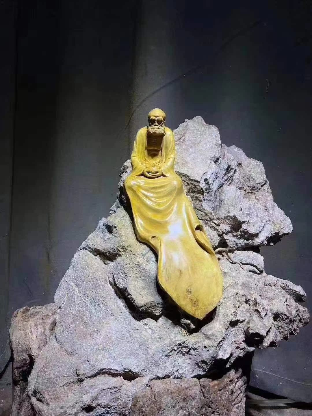 Cliff cypress boxwood carving Home decoration Chinese living room carving Handicrafts Buddha statue ornaments Zen Dharma ancestor