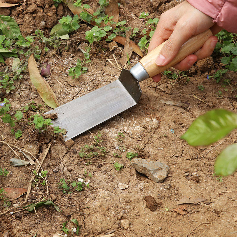 Wood handle small shovel thickened iron shovel dug for wild vegetable special weeding plant flower shovel transplanting shovel pressure melon shovel garden art tool zg