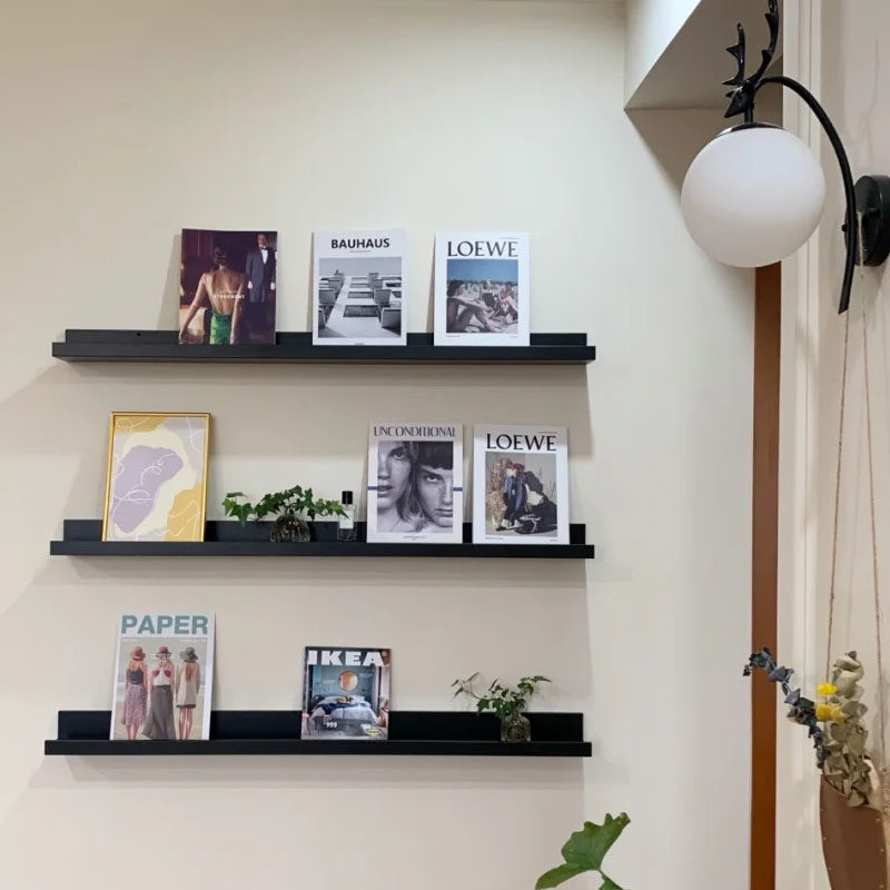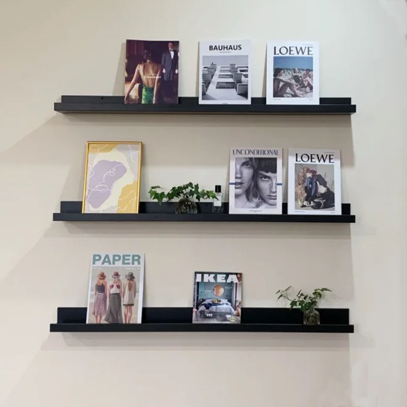Nordic minimalist wall-mounted wrought iron shelf magazine book rack bedroom wall bookshelf living room wall storage shelf