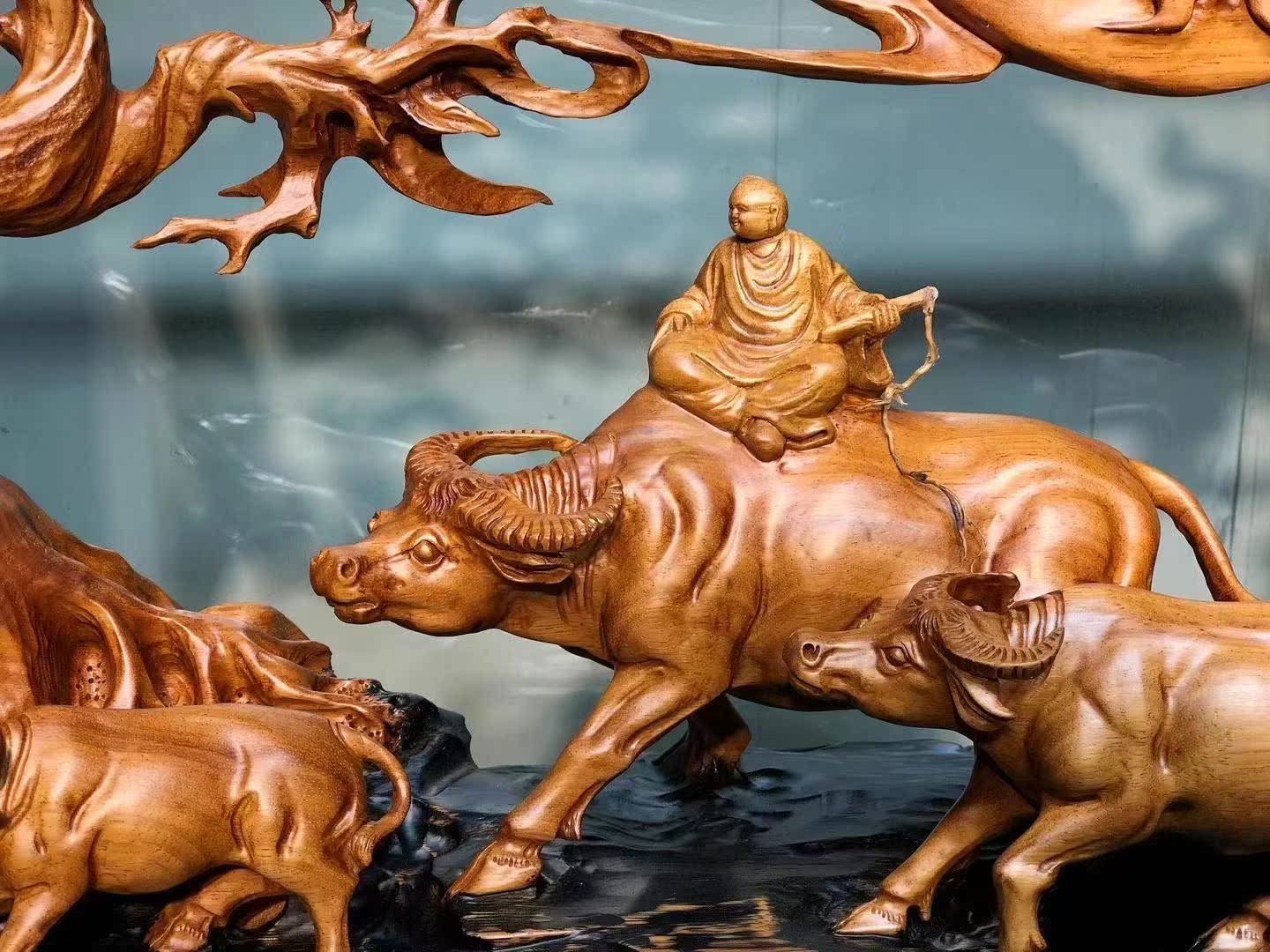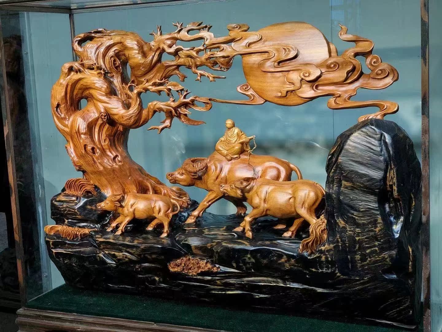 Cliff cypress root carving fine animal husbandry ornaments Village household ornaments Pastoral style village ornaments root carving crafts